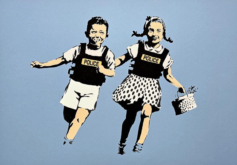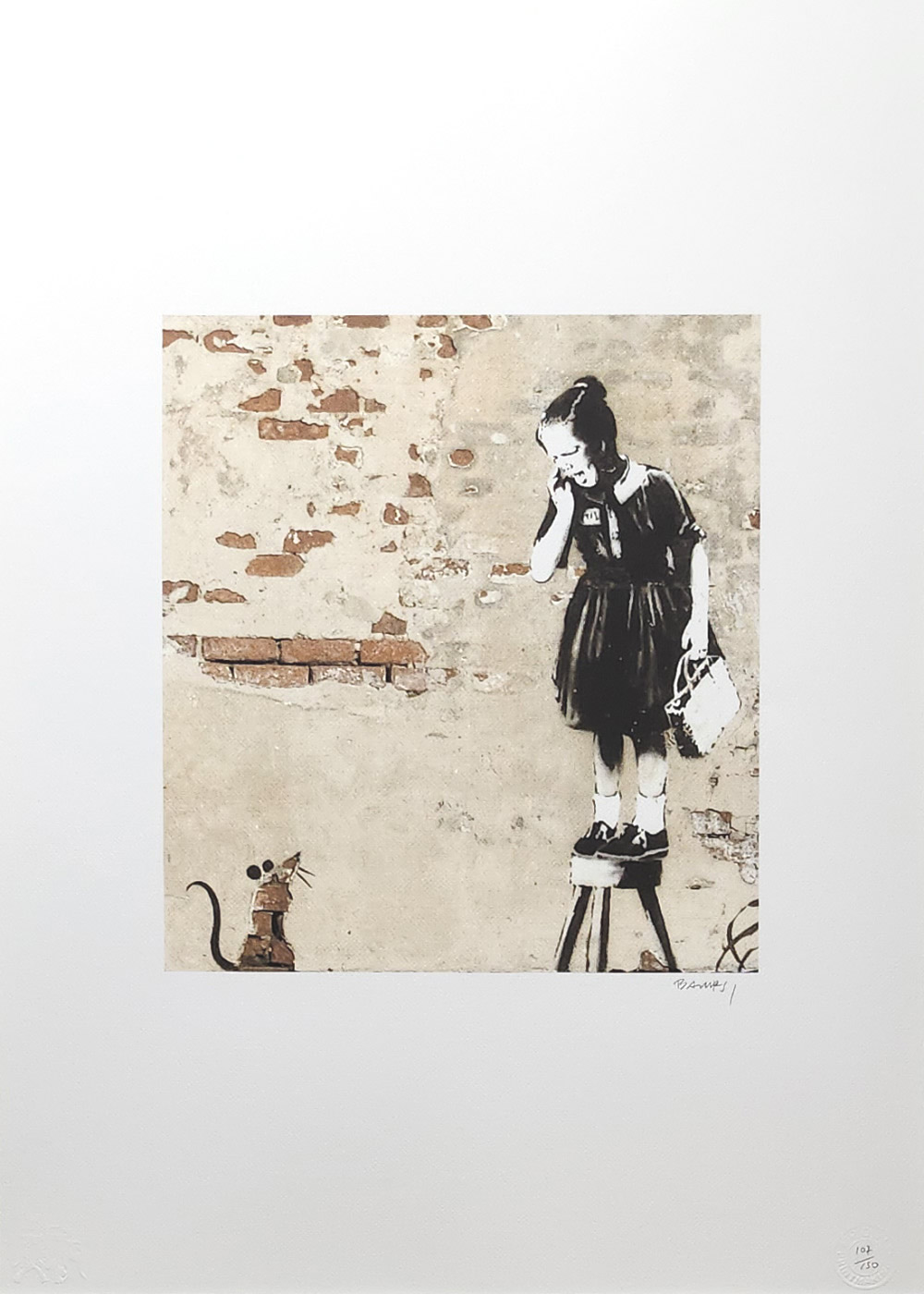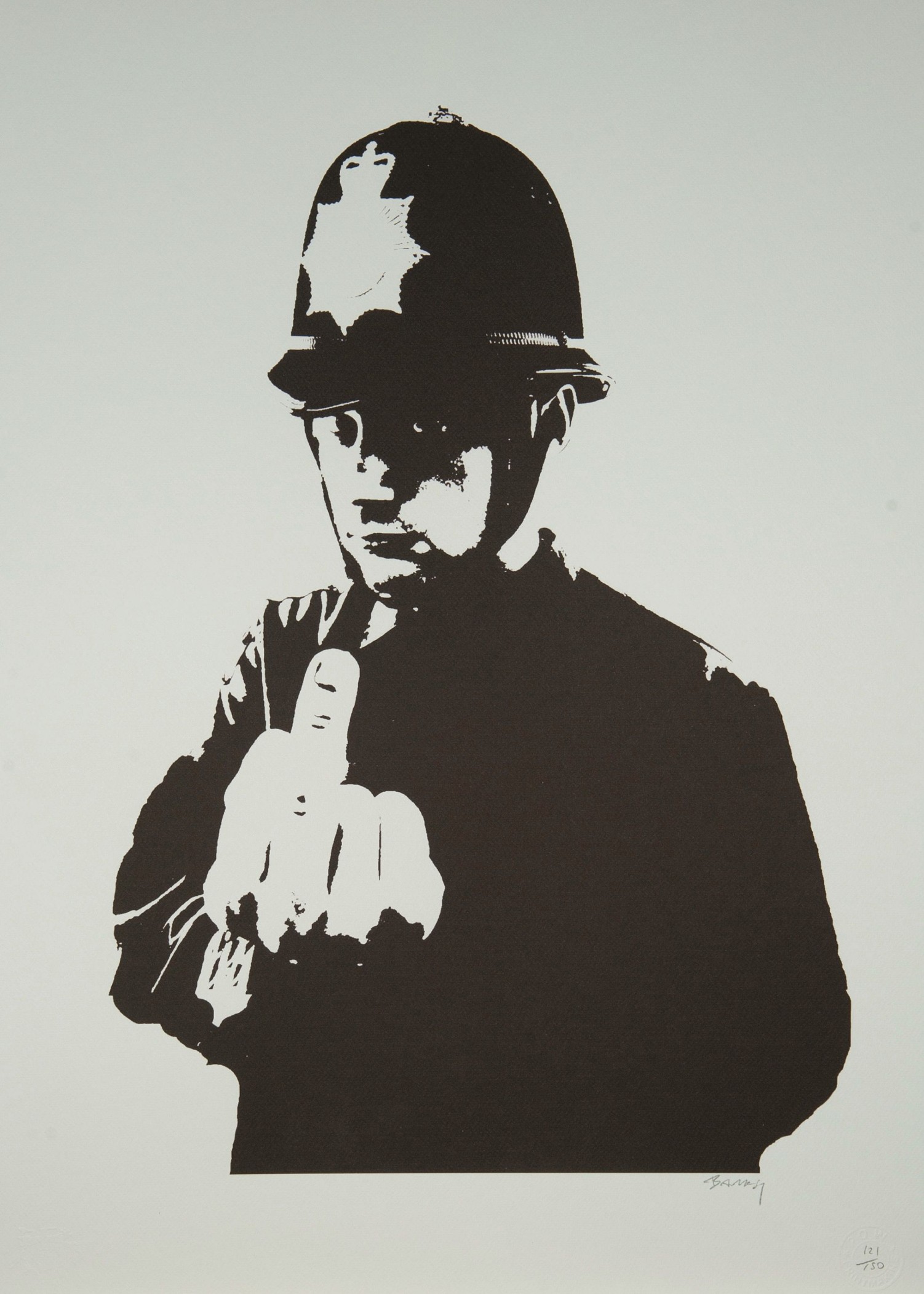 Banksy (geboren ca. 1974) is een anonieme Britse street art-kunstenaar en politiek activist, bekend om zijn satirische en maatschappijkritische kunstwerken. Zijn werk combineert vaak donkere humor met een sterke boodschap over onderwerpen zoals kapitalisme, oorlog, en sociale ongelijkheid. Banksy gebruikt vooral stencils om snel en opvallend kunstwerken op openbare plekken te maken. Hoewel zijn identiteit geheim blijft, geniet hij wereldwijd erkenning, en zijn werken, zoals “Girl with Balloon” en “Love is in the Air,” zijn beroemd geworden. Zijn kunst daagt vaak gevestigde waarden uit en zet mensen aan tot nadenken over de maatschappij.